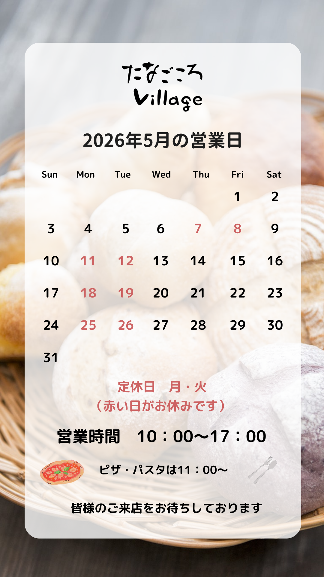 たなごころVillage、5月の営業カレンダーをお知らせします📢 定休日は月・...