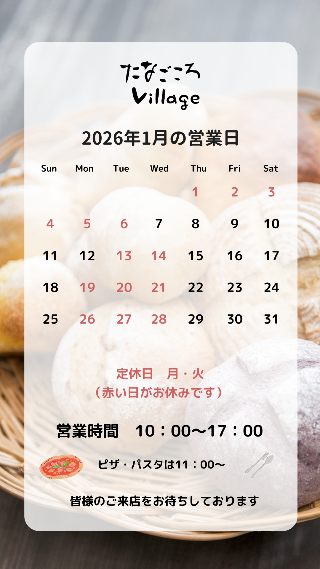 たなごころVillage、来年1月の営業カレンダーをお知らせします📢