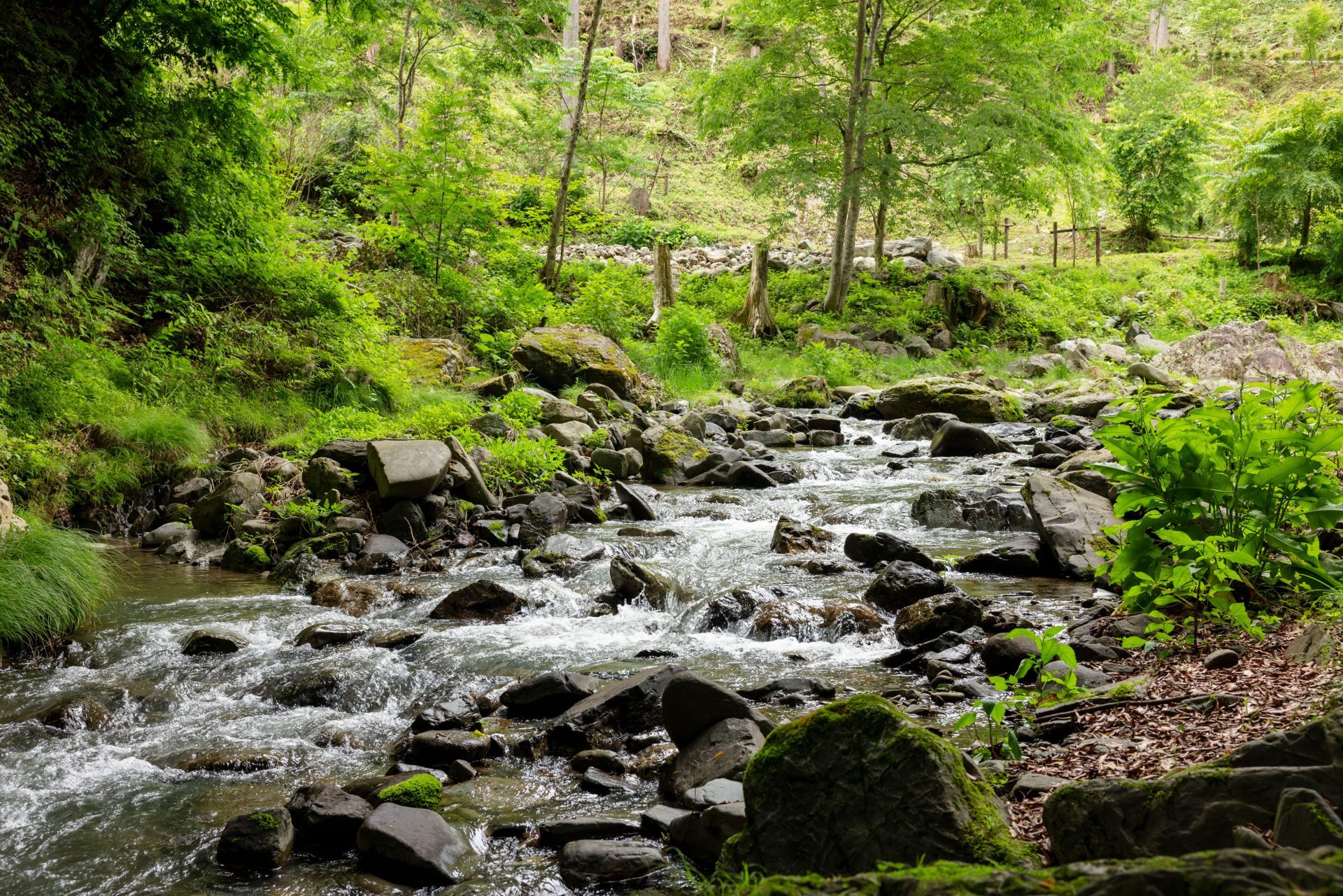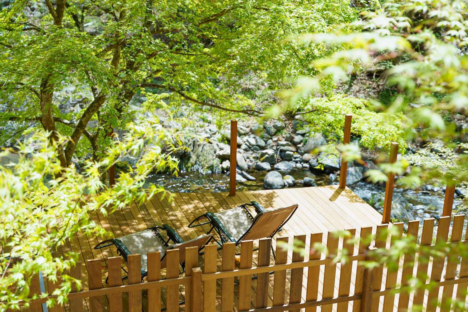 ゆったり愉快に楽しく過ごしていただきたいと「ゆらく」と名付けました。目の前を流れる秋川での川遊びも楽しめます。